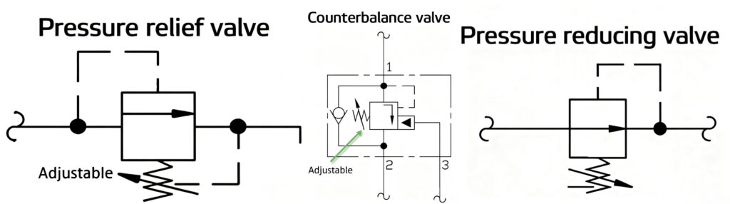 Counterbalance Valves: Control overrunning loads, e.g., gravity in lifting systems.