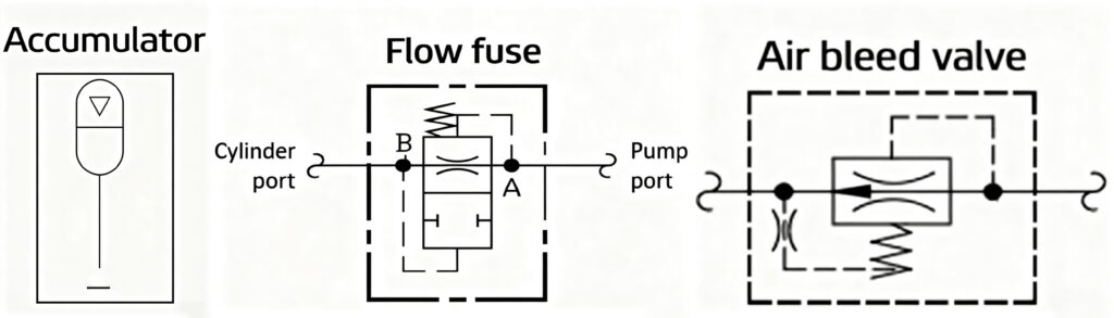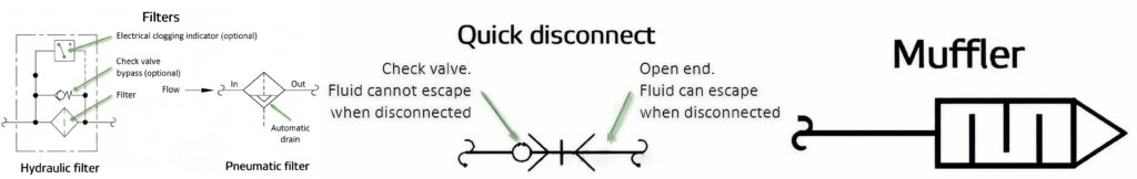 Below are the most common hydraulic and pneumatic components, their functions, and practical notes for interpreting their symbols.