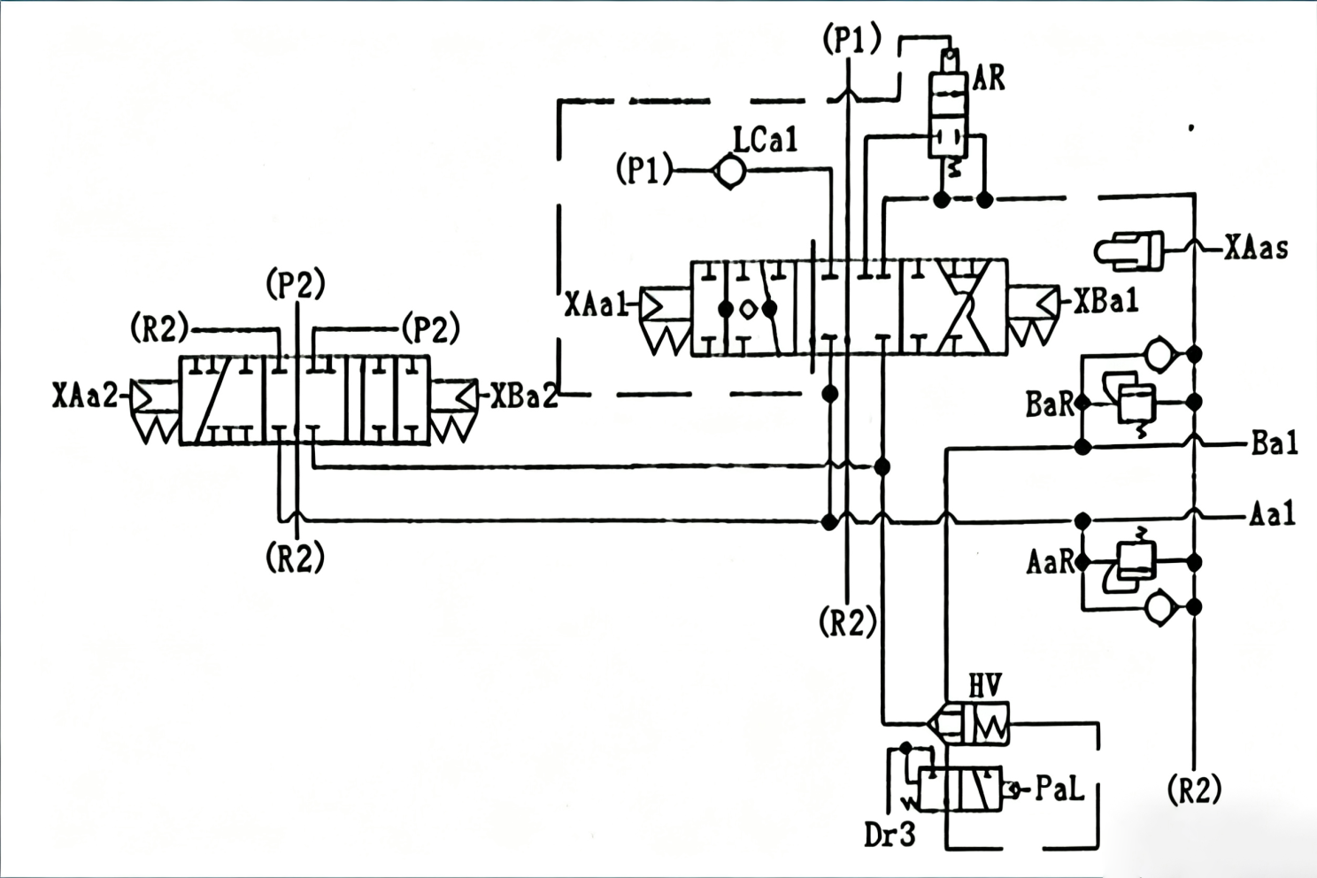 The simplest method uses a P-type directional valve, connecting the large and small cylinder chambers to the pump. While this achieves basic flow regeneration, it can produce vibration and noise due to limited load capacity.