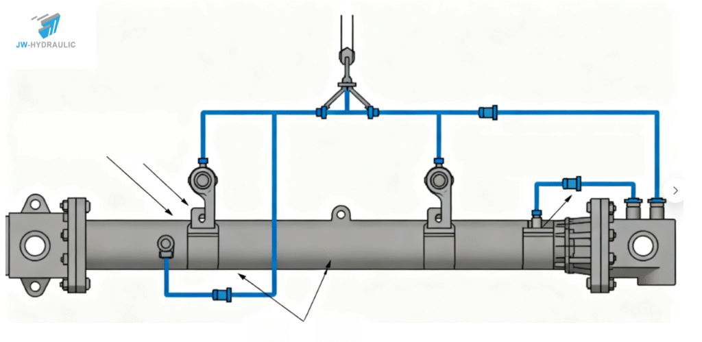 JW cylinders use optimized wall thickness and reinforced bearing support, reducing deflection and ensuring perfect stroke alignment during synchronized operation.